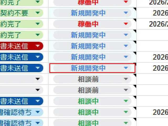 進行状態が相談前→新規開発中へ。