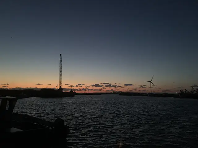 こちらは日が暮れた後の酒田の港。